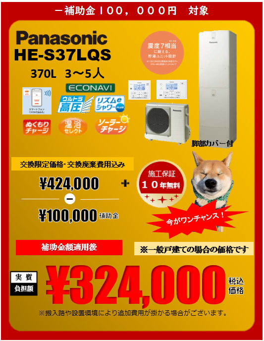 Panasonicエコキュート 370L 3〜5人