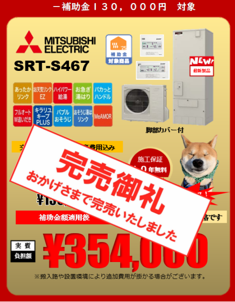 三菱エコキュート 460L 4~5人